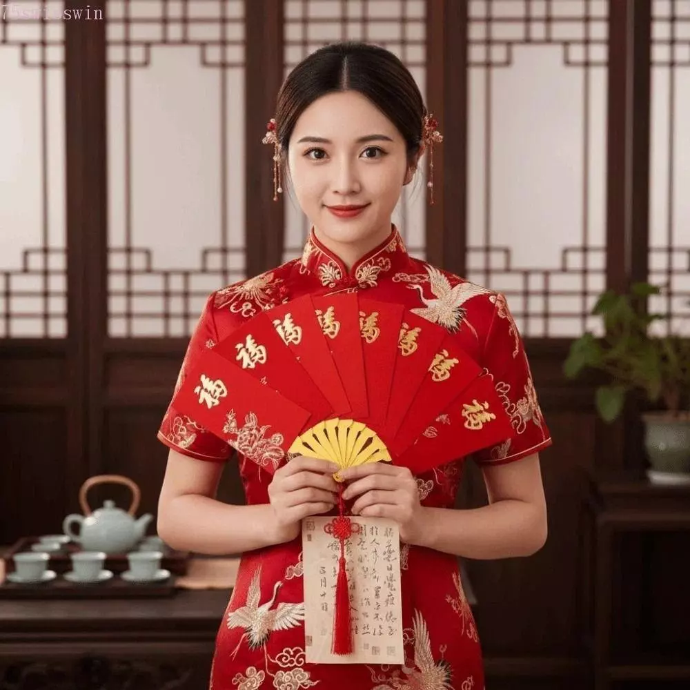 🔥 SWISSWIN Thiết kế quạt Phong bì màu đỏ, 10 thẻ truyền thống Lễ hội mùa xuân Ví đỏ, Túi đựng tiền có nút thắt Giấy Hongbao Bonus Túi đựng tiền trẻ em sinh nhật đang giảm giá!