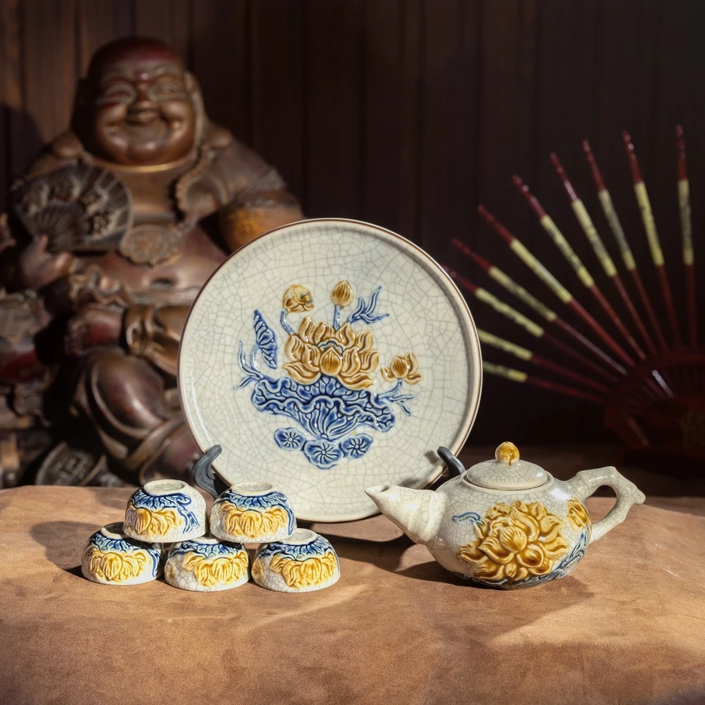 Trong không gian thờ cúng gia đình, bộ ấm chén không chỉ là vật dụng để đặt lễ vật mà còn là biểu tượng của truyền thống, nghệ thuật và sự trang nghiêm. Đặc biệt, những bộ ấm chén men rạn đắp nổi từ Bát Tràng luôn gây ấn tượng mạnh mẽ bởi độ tinh xảo và vẻ đẹp cổ điển. Tuy nhiên, chỉ sau một thời gian sử dụng mới có thể phát hiện ra những chi tiết nhỏ, những dấu hiệu lão hoá hay những thay đổi màu sắc mà không phải ai cũng nhận ra ngay. Bài viết này sẽ đi sâu phân tích những “chi tiết ẩn” trong bộ ấm chén thờ men rạn, giúp bạn hiểu rõ hơn về giá trị thực sự của chúng và cách bảo quản để duy trì vẻ đẹp lâu dài.