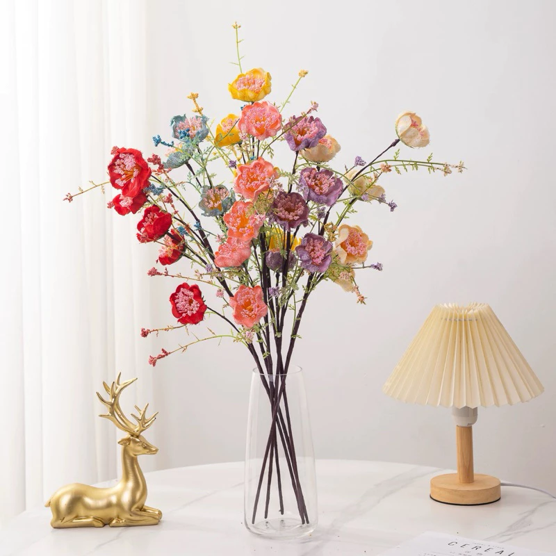 Giới Thiệu Cành Hoa Trà Gạo Cổ 60cm – 5 Bông Lớn, Nhiều Búp Non, Nhiều Màu
