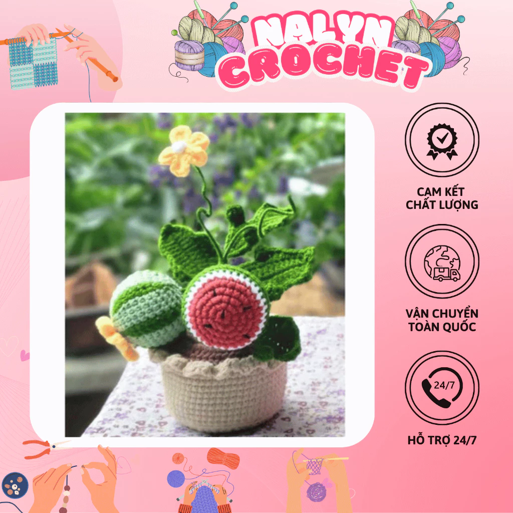 Tìm mua chậu dưa hấu handmade bằng len móc tay