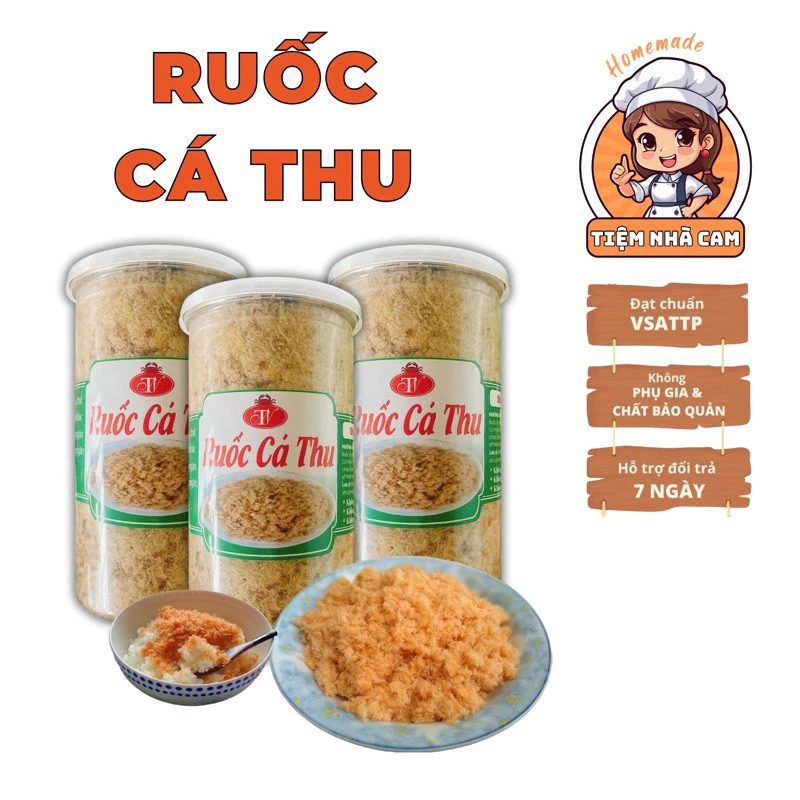 - Nguyên liệu: Chà bông cá thu được làm từ cá thu tươi, không chứa các chất phụ gia và hóa chất.