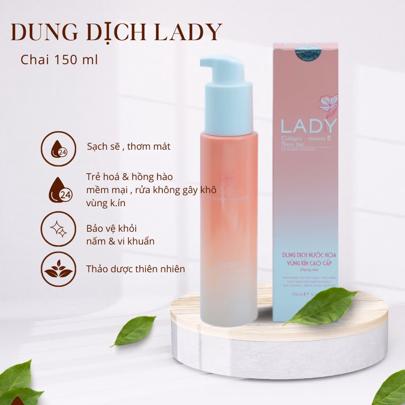 - Dung Dịch Vệ Sinh Phụ Nữ LaDy150ml: Có chứa thành phần kháng khuẩn, dưỡng ẩm và dịu nhẹ, giá 150,000 VND.