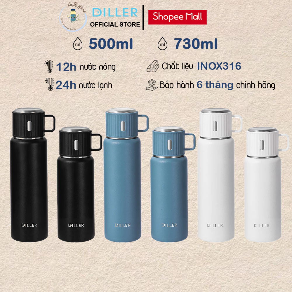 🔥 Bình giữ nhiệt Diller MLH 9119 nắp làm cốc, có lọc trà – 500ml/730ml – Khắc tên / Khắc theo yêu cầu đang giảm giá!