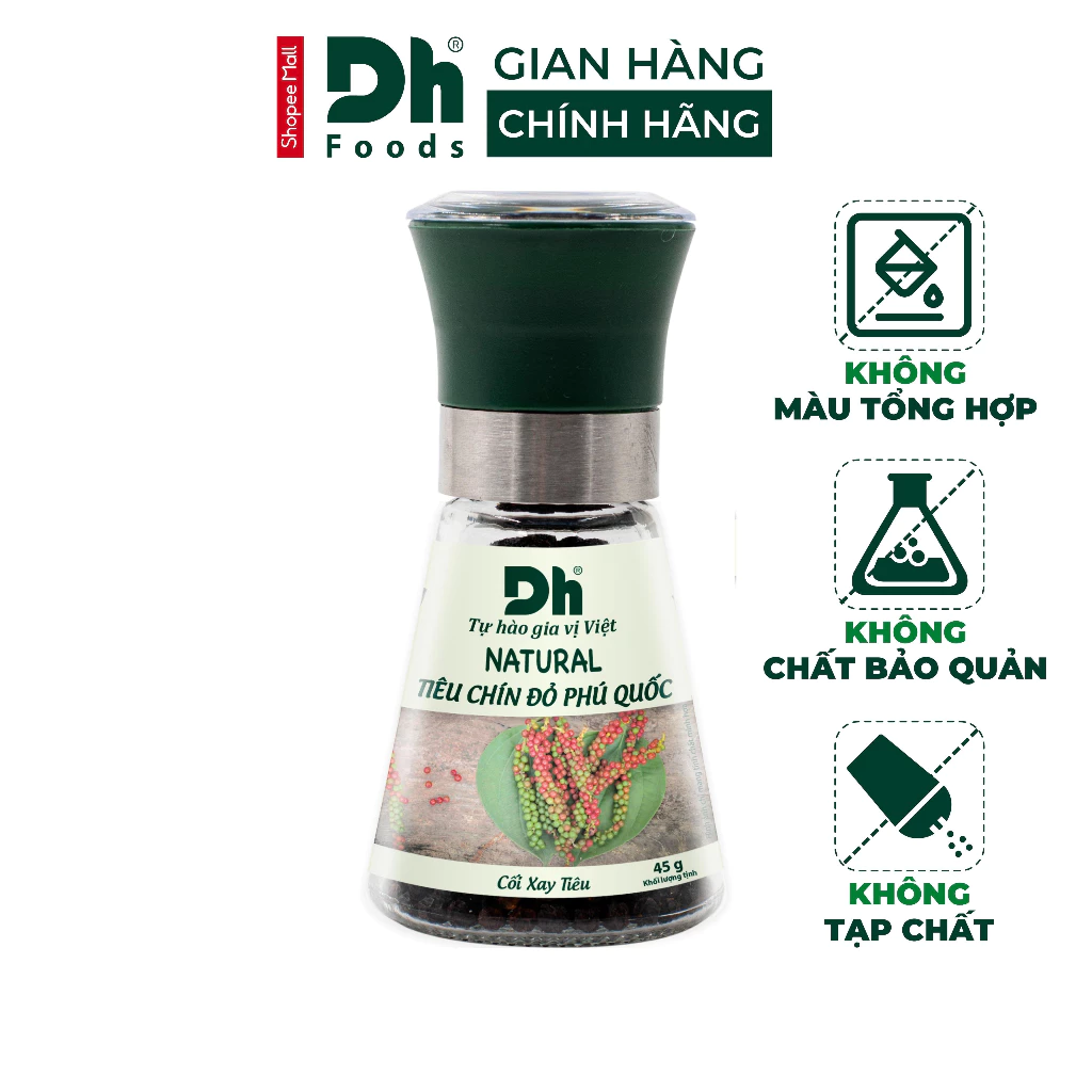 🔥 Tiêu chín đỏ Phú Quốc Dh Foods gia vị tự nhiên cối xay ceramic ướp thực phẩm, chế biến món ăn 45gr đang giảm giá!