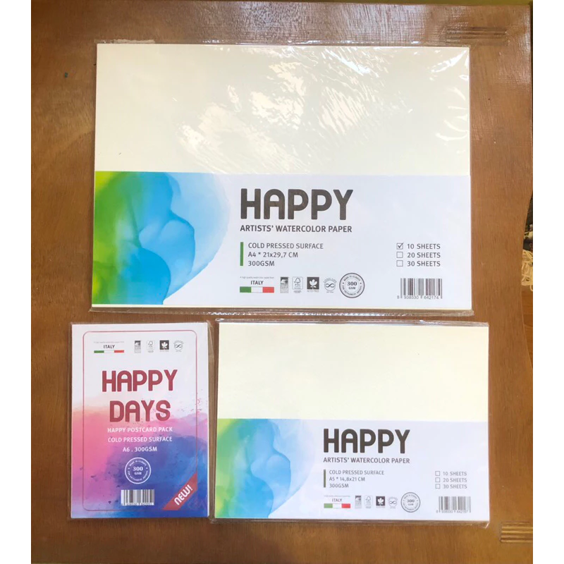 Khuyến Mãi Giấy Vẽ Màu Nước Happy Khổ A6/A5/A4 Lẻ Tờ Và 10 Tờ