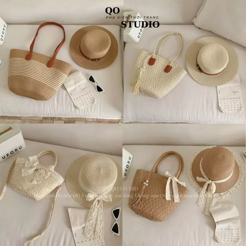 🔥 Combo Túi Mũ Cói, Mũ Cói Đi Biển Rộng Vành Phối Đai Da Cao Cấp Form Chuẩn Đẹp T16M01 QO STUDIO đang giảm giá!