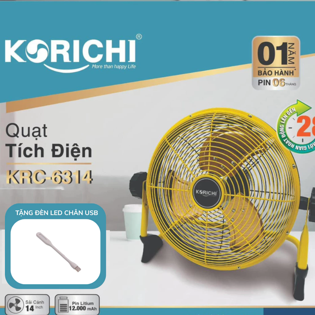 🔥 Quạt Tích Điện Korichi KRC-6314, Sải Cánh 14Inch, Công Suất 18W, Pin Lithium 12000 mAh, Tích Điện 26h, Hàng Chính Hãng. đang giảm giá!