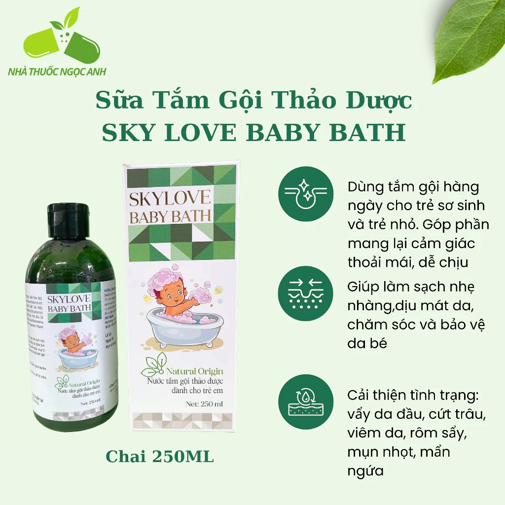 Một trong những sản phẩm được nhiều bậc phụ huynh tin dùng hiện nay là Sữa tắm gội thảo dược dành cho trẻ em Sky Love Baby Bath chai 250ml. Sản phẩm này được chiết xuất từ các thảo dược thiên nhiên, không chứa chất bảo quản hay hương liệu nhân tạo, đảm bảo an toàn cho làn da nhạy cảm của bé.