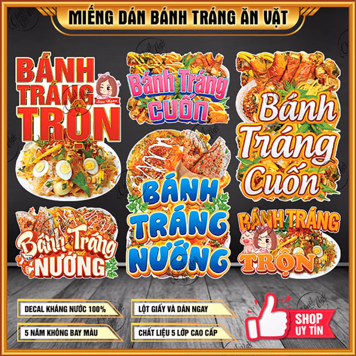 Ví dụ, bạn có thể chọn loại dán trang trí Hình dán trang trí bánh tráng trộn nướng cuốn trang trí dán tủ kính decor quán xe đẩy ăn vặt trà sữa để trang trí cho tủ kính của mình. Loại dán trang trí này được thiết kế với mẫu mã đẹp mắt và độ bám dính tốt, đảm bảo không bị bong tróc sau một thời gian ngắn sử dụng.