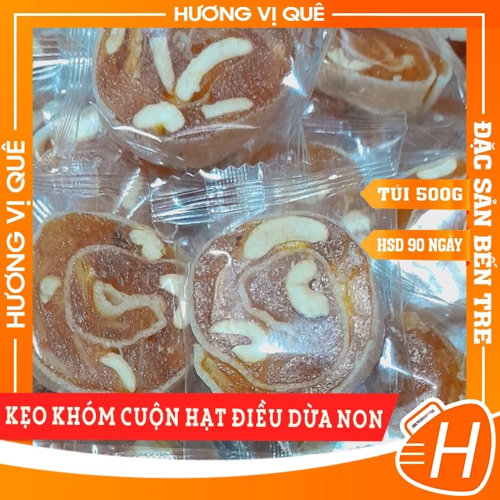 🔥 Kẹo Khóm Cuộn Hạt Điều Dừa Non – Túi Zip 500g – Đặc Sản Bến Tre đang giảm giá!