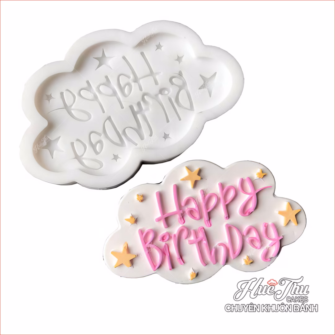 Khuôn Silicon Chữ HAPPY BIRTHDAY Kèm Hình Ngôi Sao – Phụ Kiện Trang Trí Bánh Sinh Nhật Tiện Lợi, Dễ Dùng & Sáng Tạo