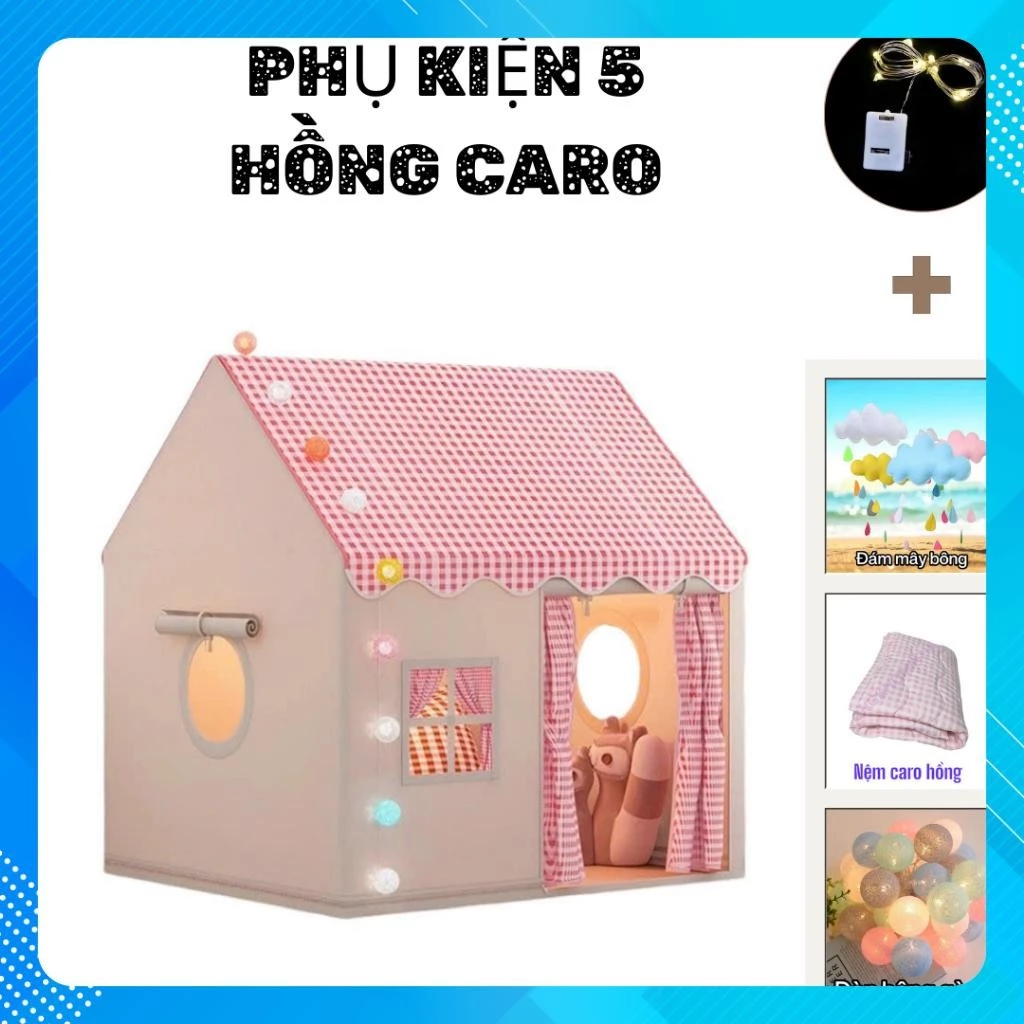 Lều công chúa khung sắt siêu chắc – combo 5 chi tiết full phụ kiện, quà đèn LED xinh