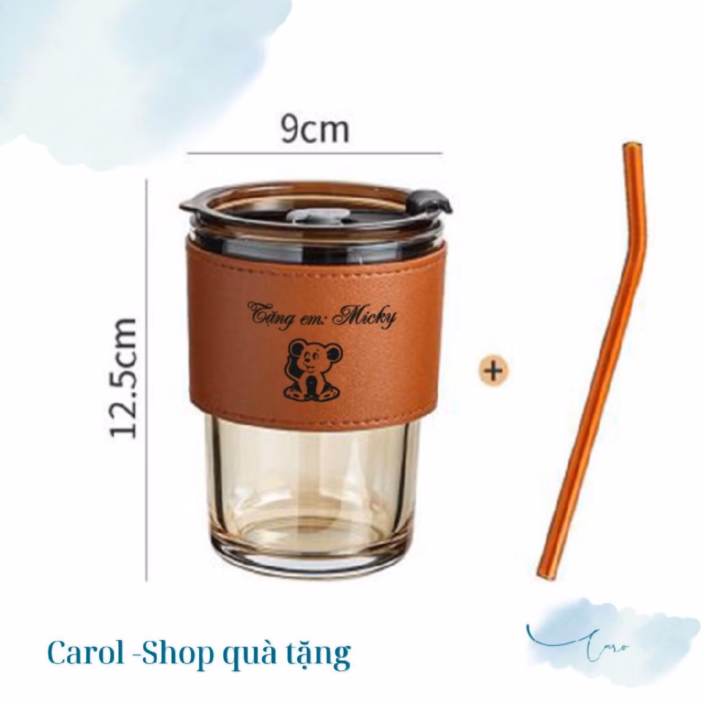 🔥 Ly thủy tinh màu 450ml, quai da kèm ống hút tiện lợi. Có khắc tên/ thông tin riêng đang giảm giá!