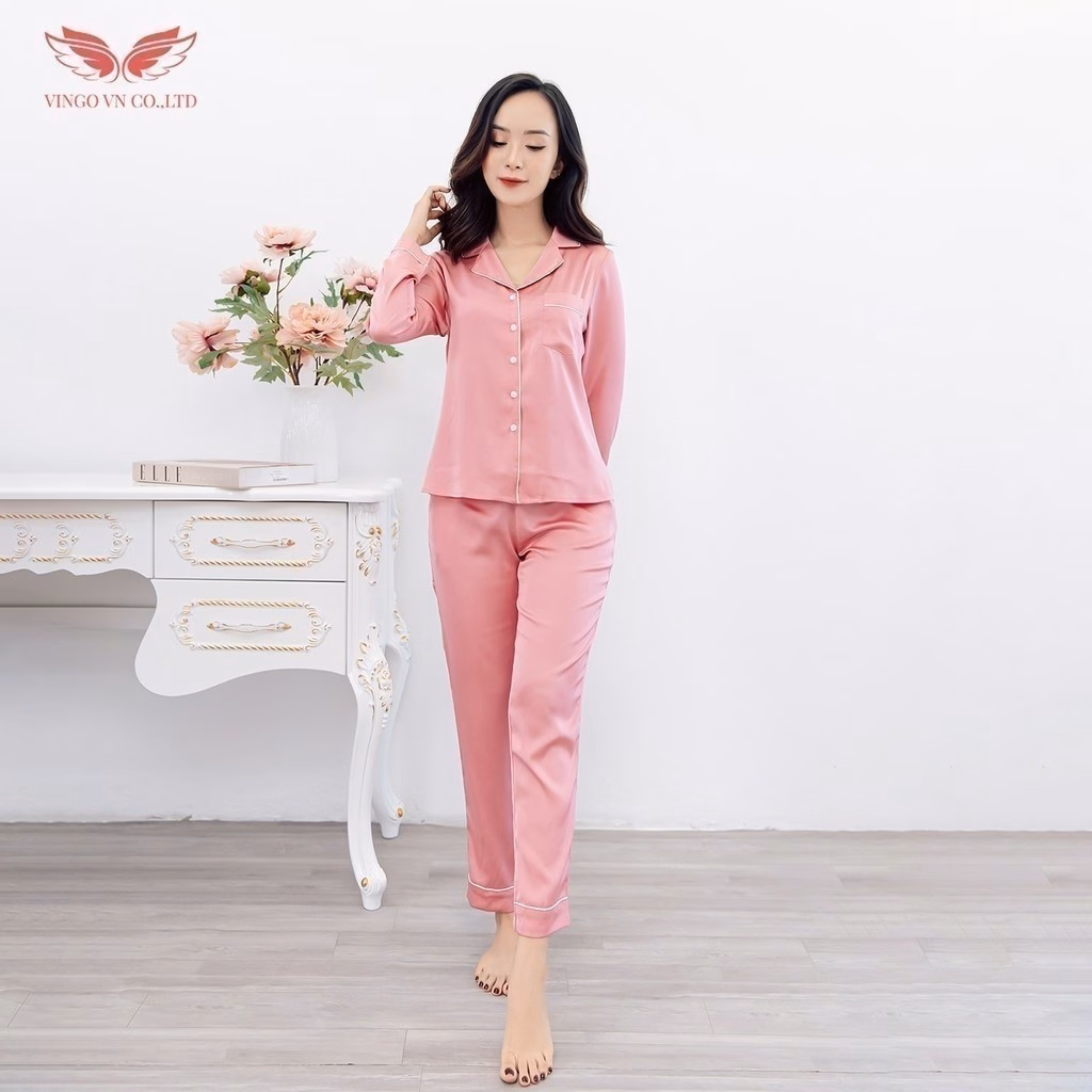 🔥 Bộ đồ ngủ nữ Pijama mặc nhà lụa Pháp VINGO tay dài mùa Thu H253 VNGO đang giảm giá!