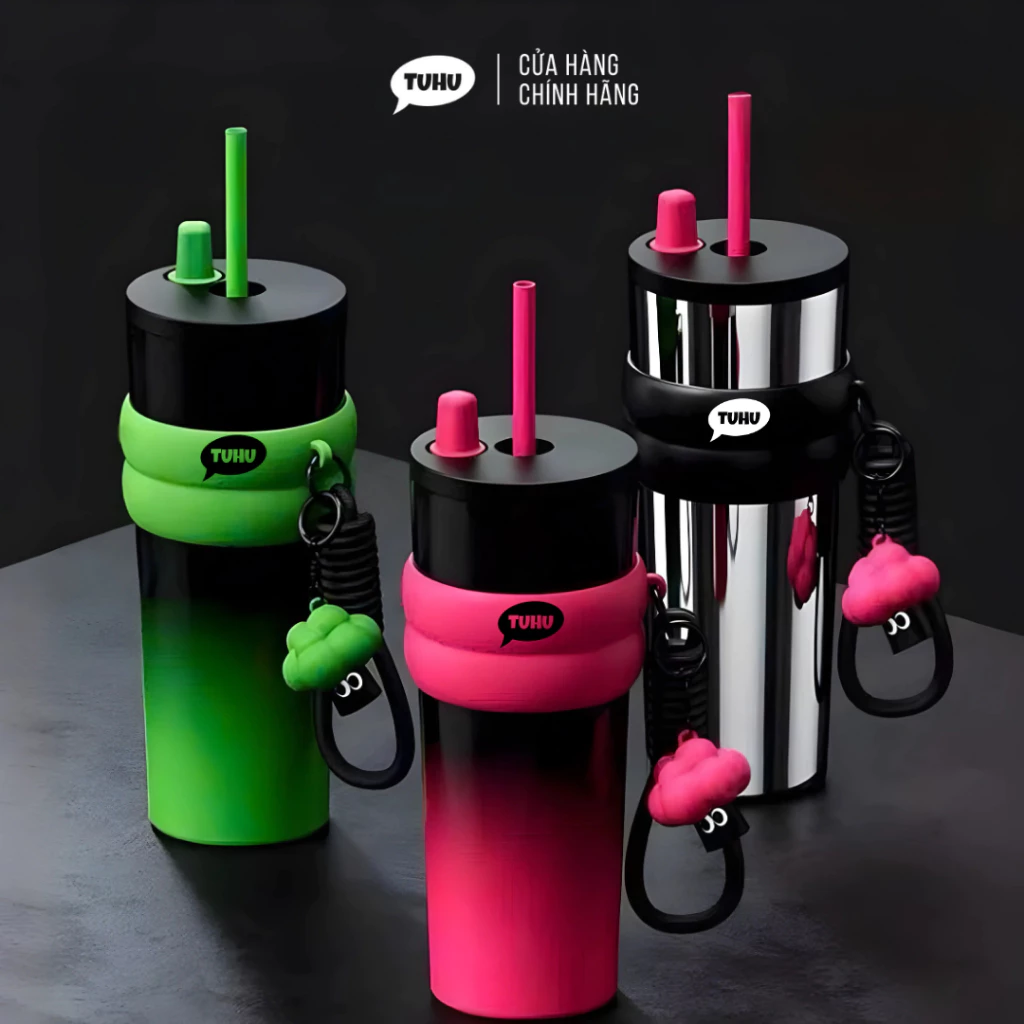 🔥 Ly giữ nhiệt khắc tên Fun 710ml có móc charm, bình nước giữ nhiệt nóng lạnh inox 316 cao cấp có ống hút – TUHUHOUSE đang giảm giá!