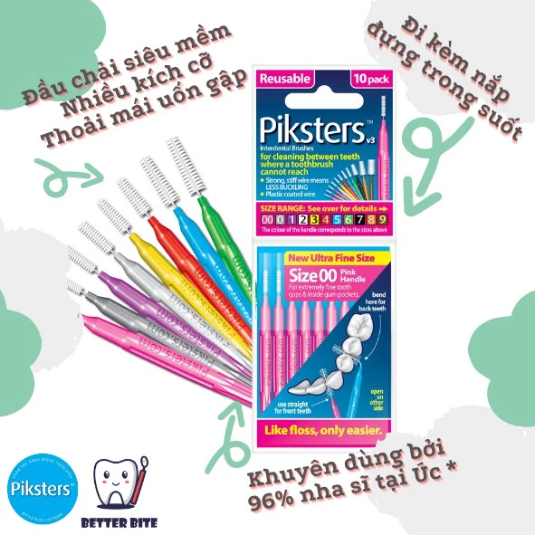 Trong bài viết ngày hômnay, … Chúng tôi hy vọng đã cung cấp thêm những thông và giúp bạn thấy nó giúp ích để chọn được loại kẽ phù hợp vời bạn . Chúc một ngày tốt lành.🔥 Túi 10 bàn chải kẽ cỡ 00-06 chuyên dụng cho người niềng răng Piksters đang giảm giá!