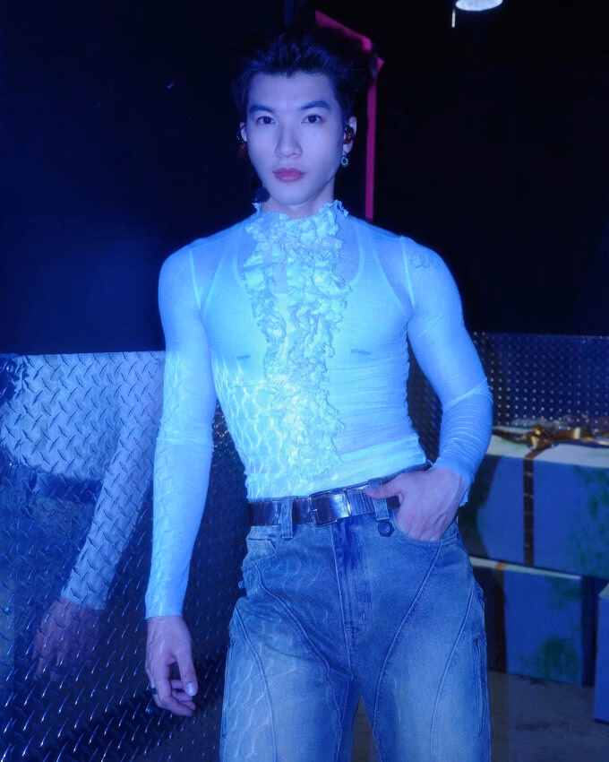 Trên website của hãng, mẫu áo này được diện bởi cả mẫu nam và nữ, thể hiện sự linh hoạt và đa dạng trong thiết kế của Latui Aetelier. Việc Hieuthuhai chọn trang phục này để trình diễn có thể thấy anh muốn thể hiện sự tự tin và phong cách mới của mình.
