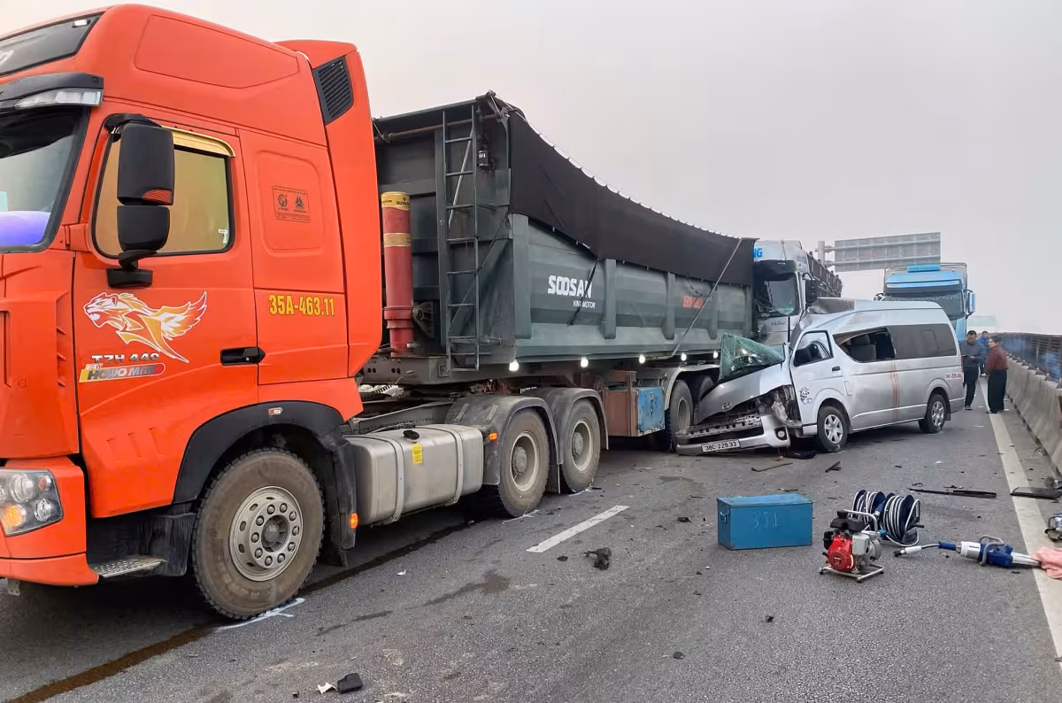Khoảng 3h40 ngày 14/1, xe khách 16 chỗ biển Hà Tĩnh do tài xế Phan Văn Trường (40 tuổi) điều khiển đang chạy trên cao tốc Mai Sơn – Quốc lộ 45 hướng Nghệ An – Hà Nội. Khi vào xã Đồng Tiến, xe khách tông đuôi xe đầu kéo do anh Bùi Văn Hồi (đang dừng) khiến xe khách bị chệch sang bên phải.