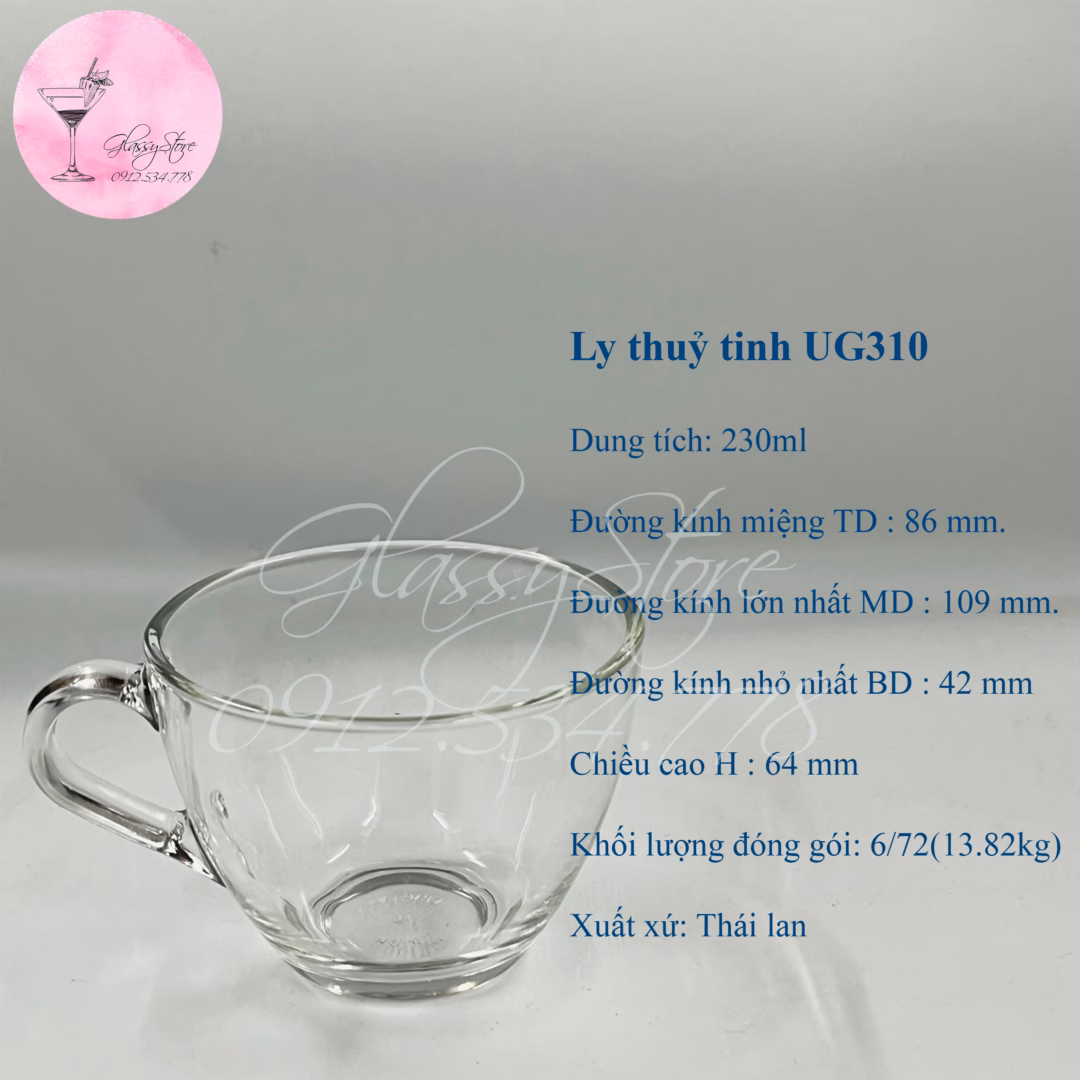 - Dung tích phù hợp: Ly quai UG310 có dung tích 230ml, phù hợp cho việc thưởng thức cafe hoặc trà.