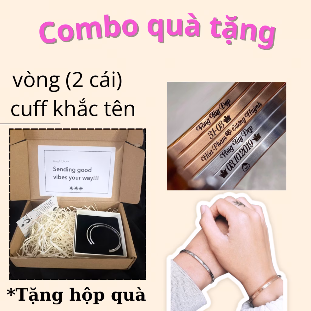 🔥 [MUA 2 VÒNG TẶNG HỘP + TÚI + THIỆP] Vòng tay cuff titan nam nữ miễn phí khắc tên theo yêu cầu đang giảm giá!